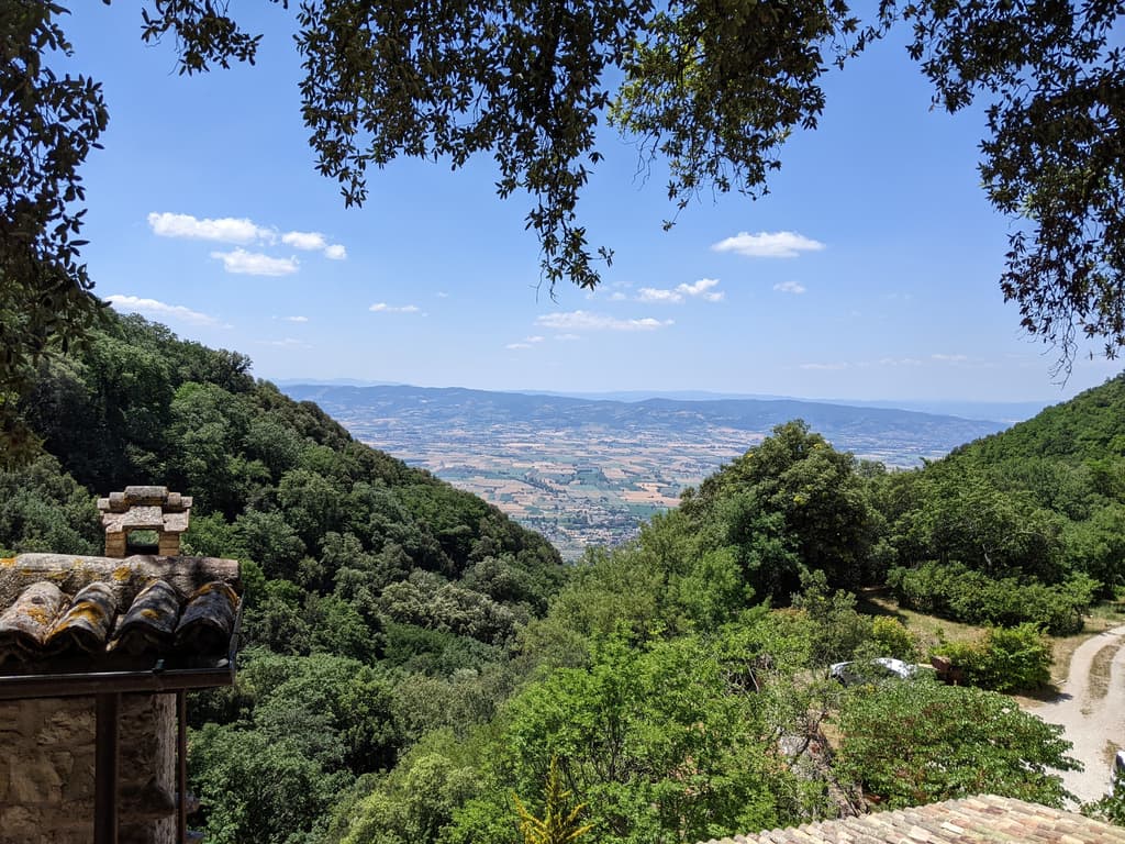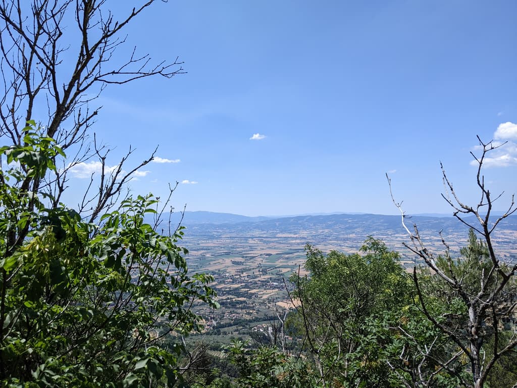 Dopo il nostro incontro riprendiamo a gironzolare e decidiamo di organizzare un trekking per il giorno seguente per raggiungere l’Eremo delle carceri. Scegliamo, inizialmente, un percorso di 4 ore circolare che prosegue dopo l’Eremo, ma la mattina successiva decidiamo che, 1h30 di SOLA salita, era più che sufficiente! Amiamo molto camminare, fare trekking e stare in mezzo alla natura ma eravamo un po’ fuori allenamento … Terminata la nostra escursione, torniamo verso il camper e ci prepariamo per ripartire.