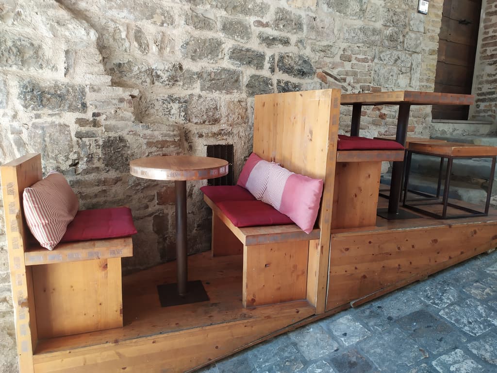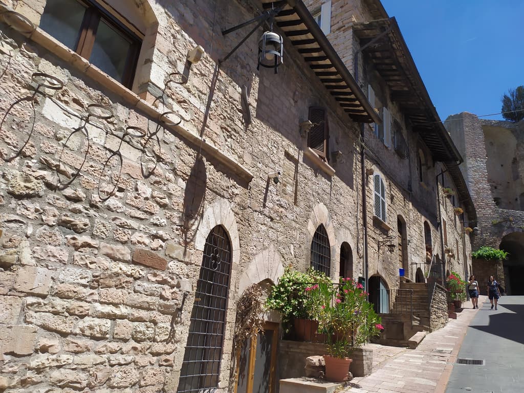 Dopo la basilica, abbiamo gironzolato un po’, ammirato qualche altro affascinante scorcio, e visitato qualche chiesetta qua e la, finché, non decidiamo di sederci in questa deliziosa vineria scovata per caso in una viuzza e bere un bicchiere di vino (Grechetto per la precisione), diventati, chiaramente, poi due. Quella che doveva essere una breve sosta, si è trasformata in una lunga chiacchierata con Lorenza, una fantastica donna di Bologna che, ogni mese, molla tutto e tutti per qualche giorno, per venire ad Assisi in solitaria. Adoro conoscere persone nuove, la loro storia, le passioni e i loro sogni, i successi e i fallimenti e, perché no, anche le loro sofferenze: mi permette di riflettere e aprire la mente. C’è sempre qualcosa da imparare e il confronto con altre persone mi permette, ogni volta, di aggiungere qualcosa in più, al mio bagaglio personale.