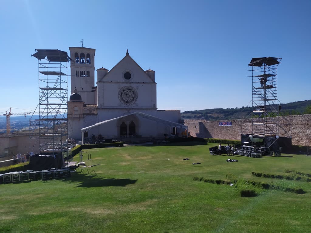 Ricollegandomi al precedente discorso, al nostro arrivo abbiamo trovato una serie di persone che smontavano luci e un palco. Destino ha voluto che, proprio il giorno prima del nostro arrivo, Carlo Conti facesse ad Assisi un evento televisivo, quindi, vi beccate le foto con le impalcature.