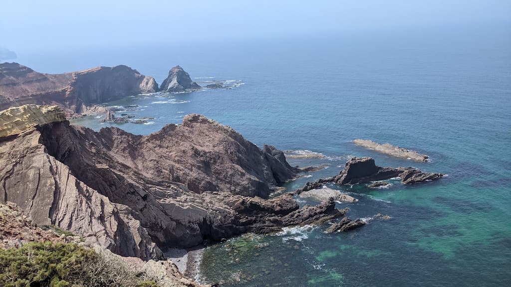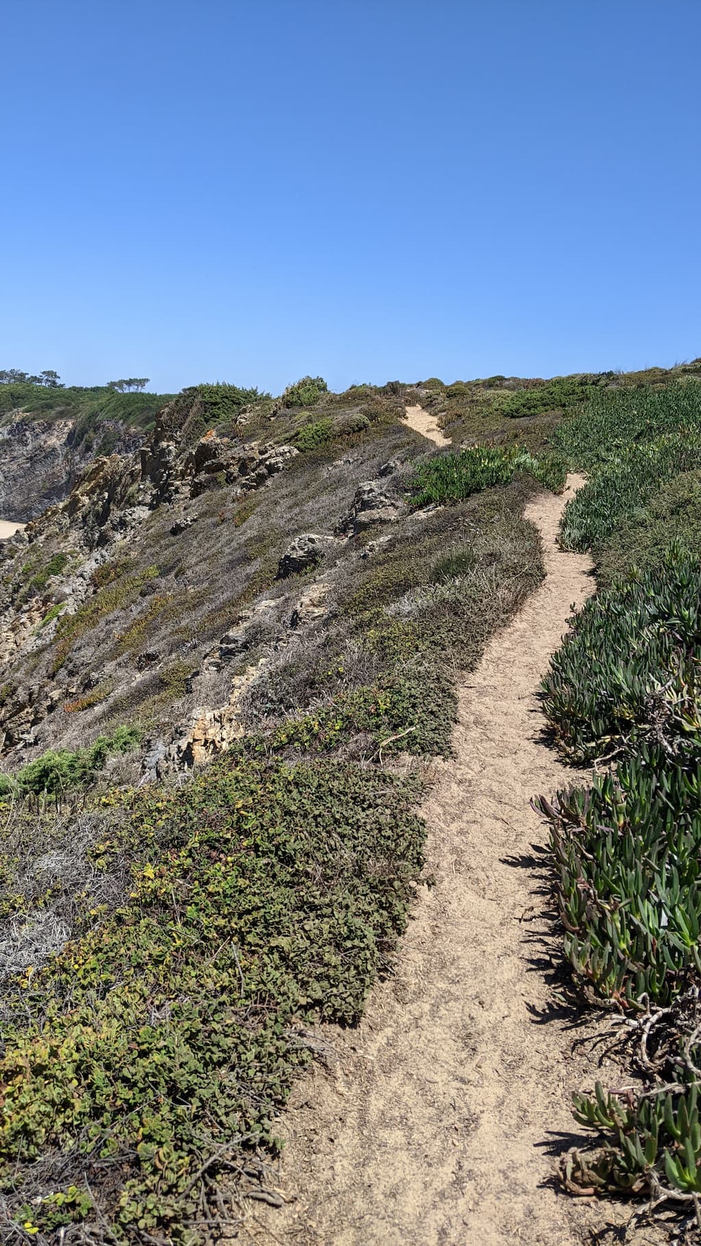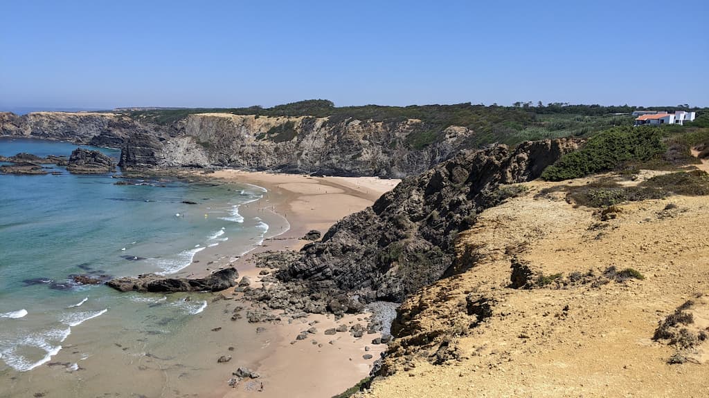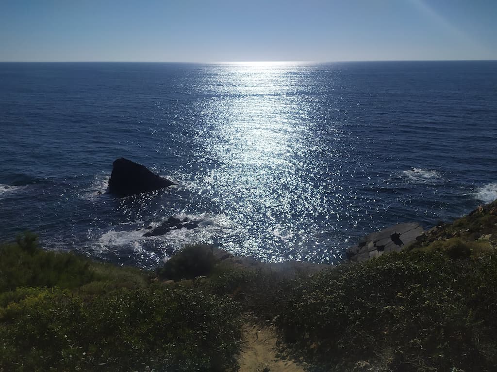 Ci addentriamo lungo la Rota Vicentina (contrassegnata da due strisce, una verde e una azzurra). Secondo l’app, la difficoltà del percorso è intermedia, ma a noi è sembrata abbastanza semplice, eccetto l’ultimo tratto e la discesa alla spiaggia.