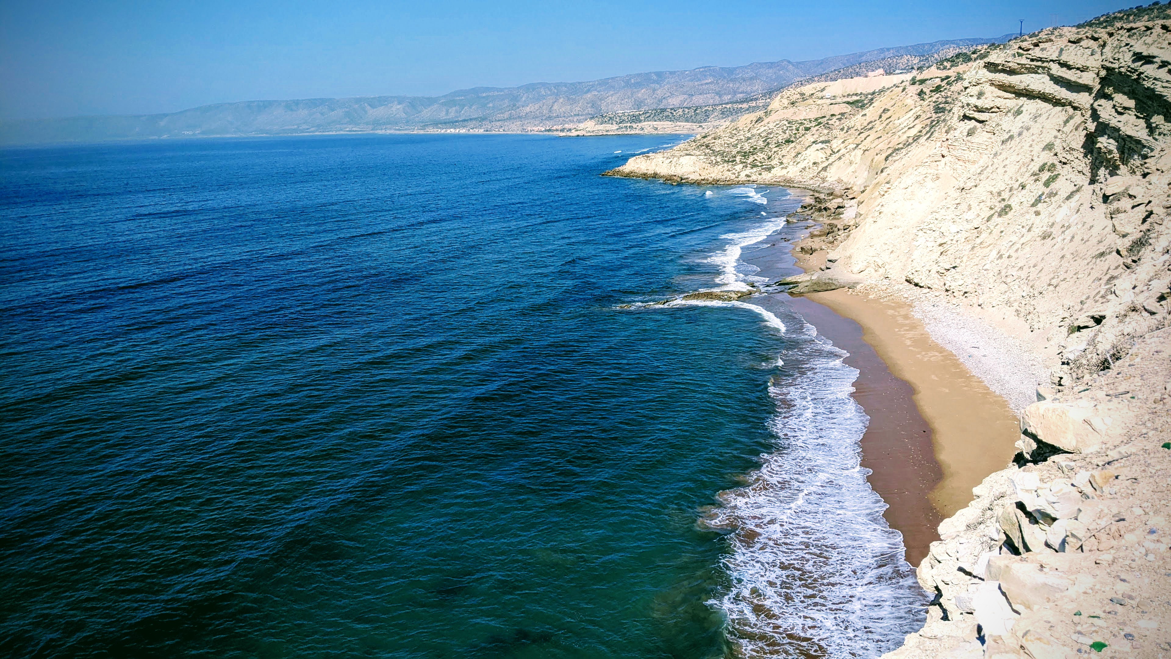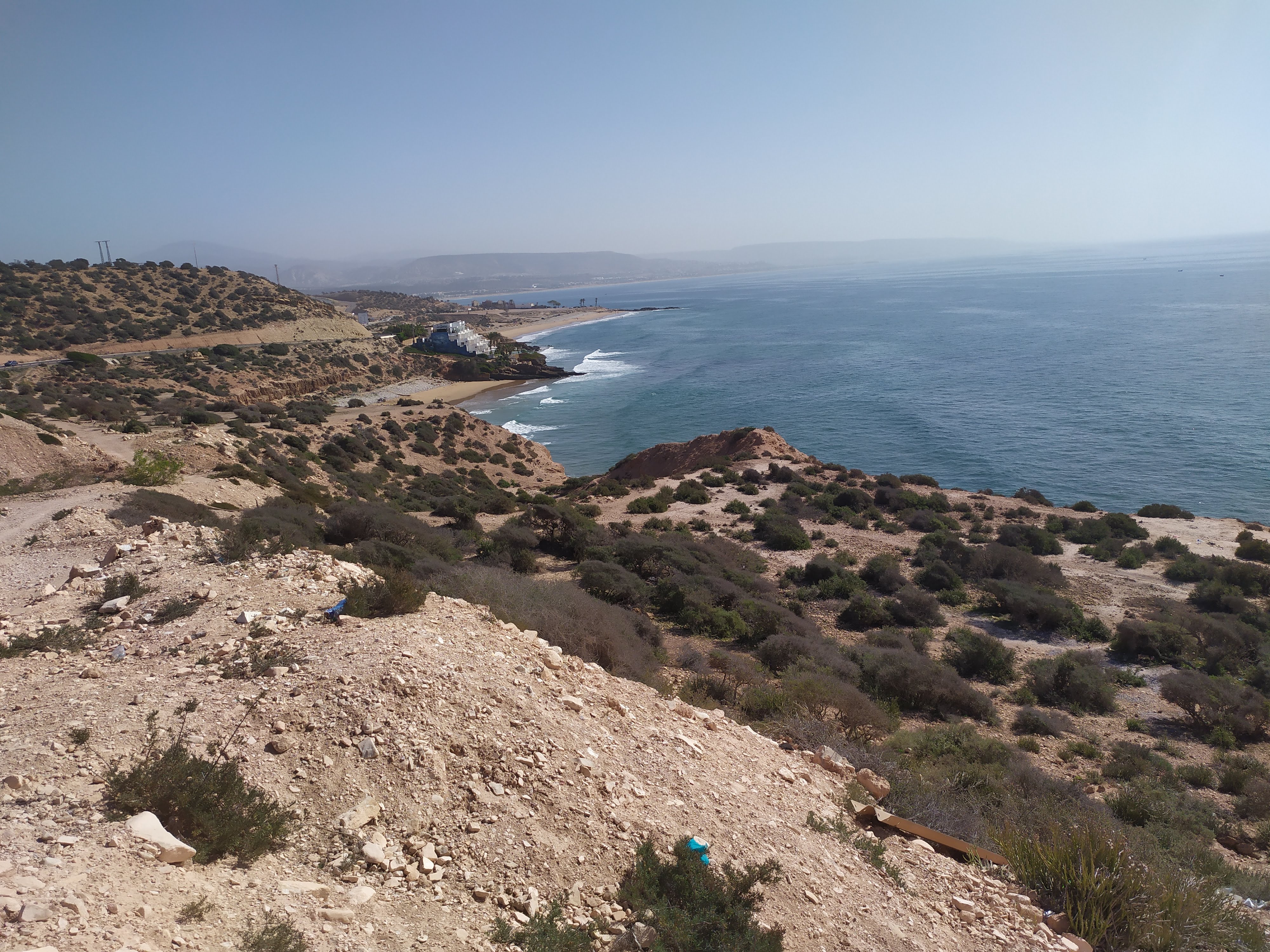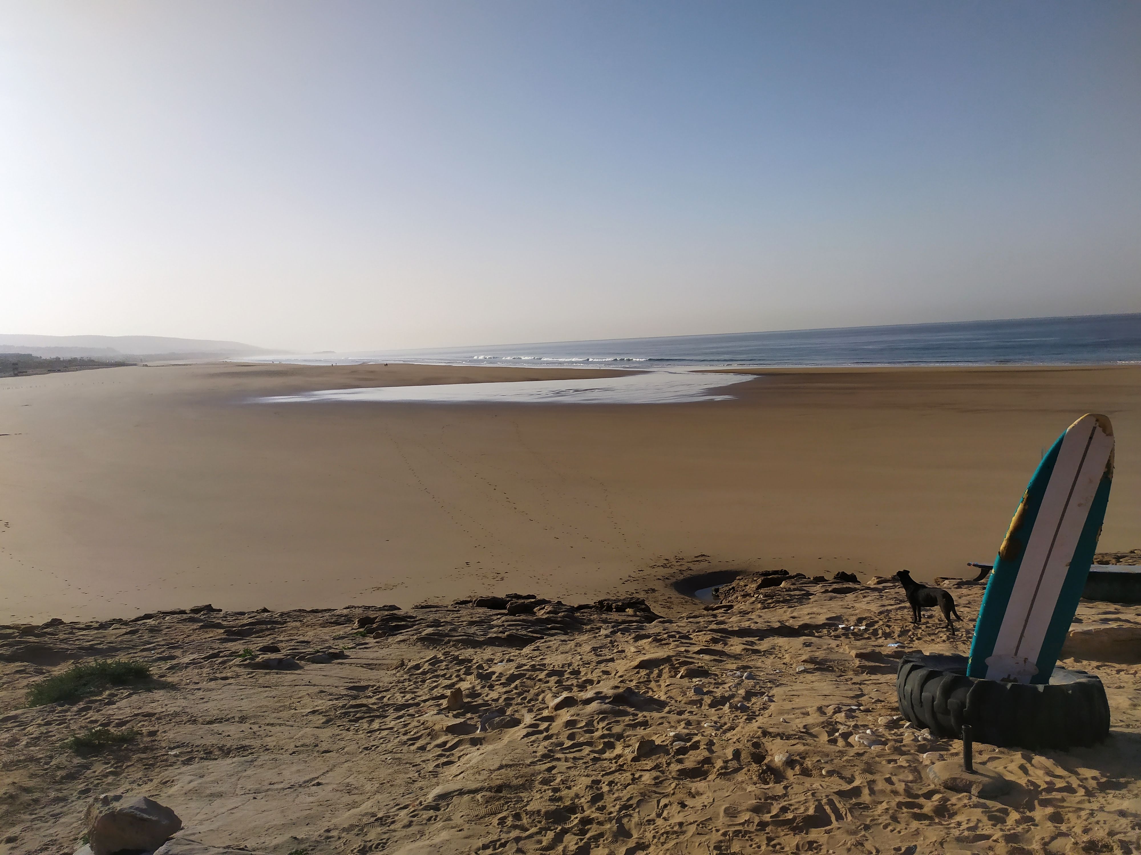 Il resto del tempo lo abbiamo trascorso un po’ a zonzo tra le viuzze di Taghazout, facendo una bella camminata lungo la costa e, cosa che ci viene benissimo al contrario del surf, assaggiando cibo locale: tajine, pesce fresco cucinato davanti ai nostri occhi ad un prezzo ridicolo, crèpe ricoperte di Amlou, una sorta di sciroppo cremoso fatto di arachidi, miele e olio di Argan e il pane, spettacolare, che i locali usano anche come forchetta. Chiaramente, abbiamo cercato di emularli, ma mentre loro lo fanno con estrema naturalezza e grazia noi sembravamo dei cavernicoli. Nessuno vende o serve alcolici, a parte un paio di localini più turistici e gli hotel; i pasti vengono accompagnati da un buonissimo tè alla menta da bere rigorosamente zuccherato, anche per chi, come me, beve tè e caffè senza zucchero.